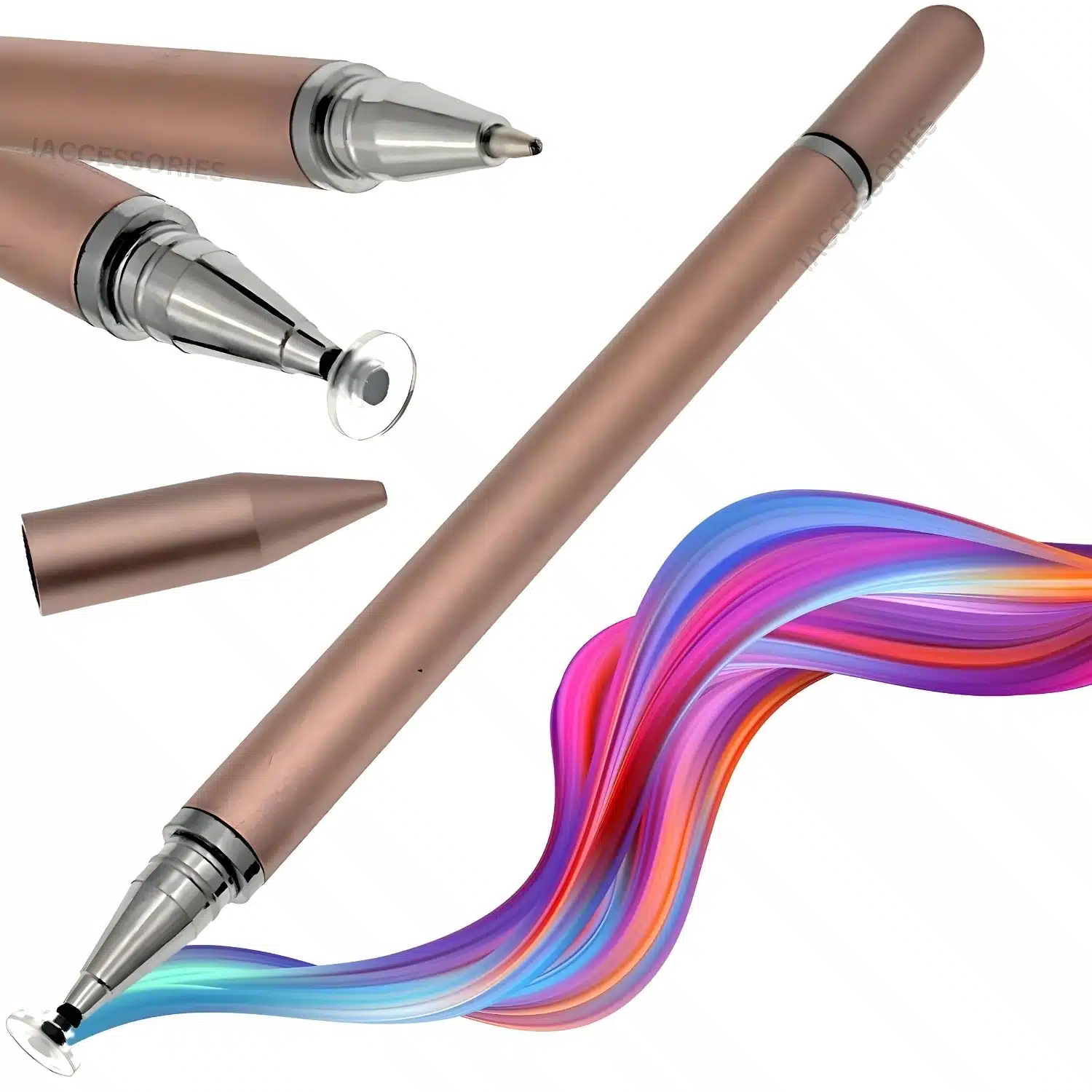 A versatile 2-in-1 tool featuring a fine point silicon disc for screens and a smooth ballpoint pen for paper. Elevate your writing experience.