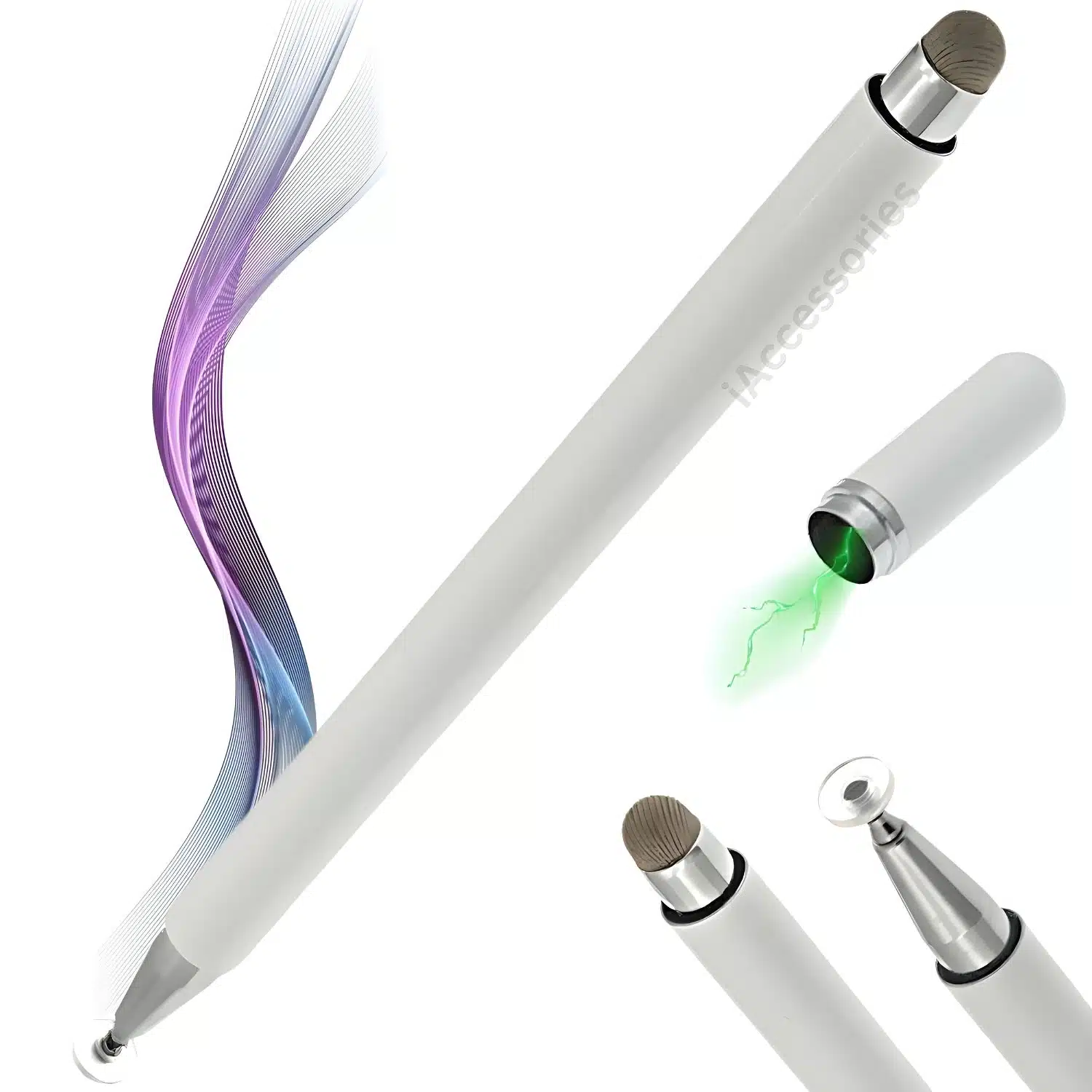 iAccessories 2 Way Magnetic Stylus Pen with Fiber & Fine Point Silicone Disc Tip – White