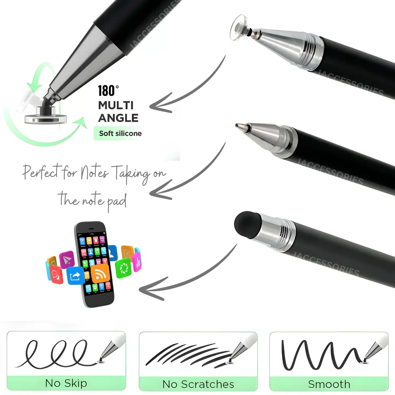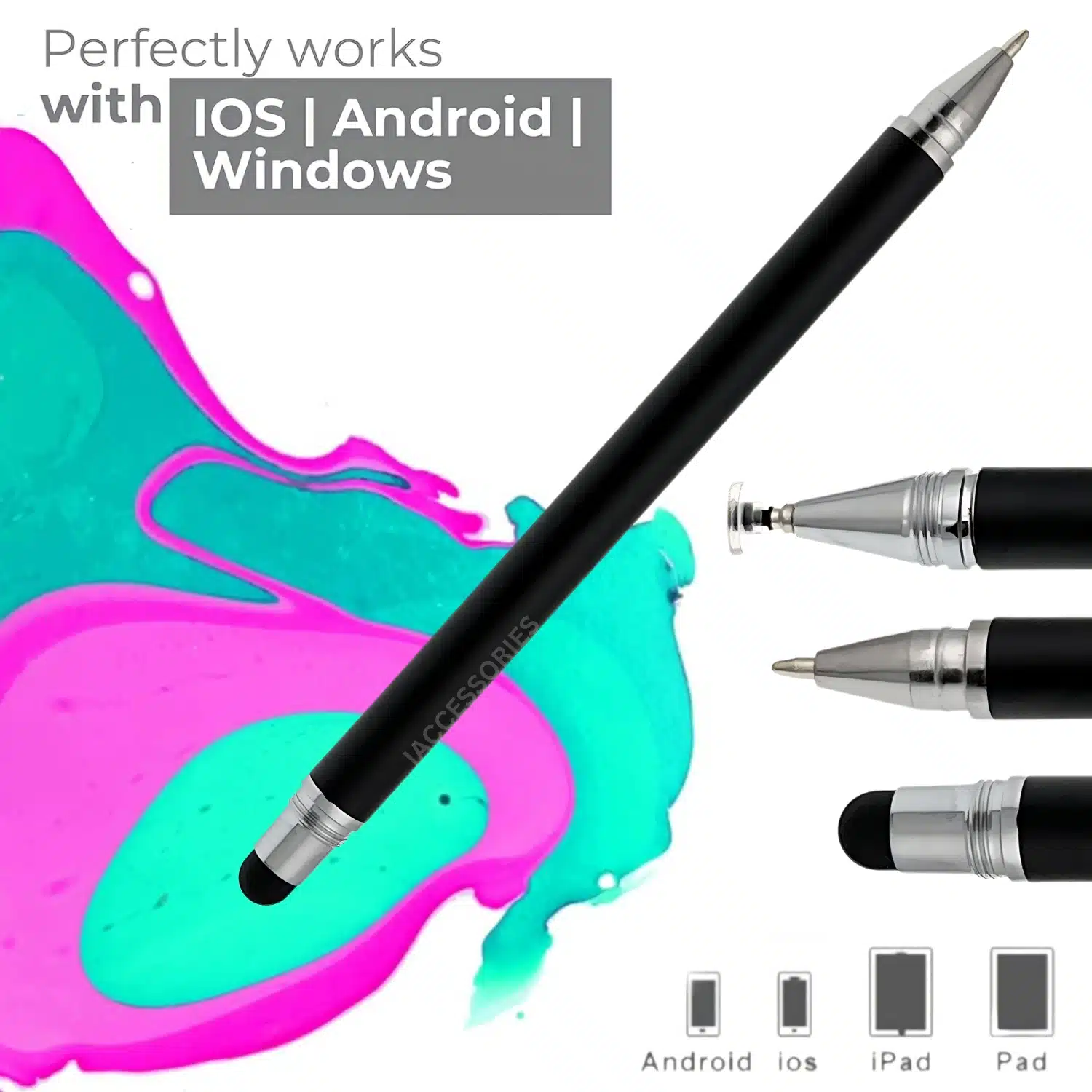 Upgrade your touch screen experience with the iAccessories 3 in 1 Stylus with Ballpoint Pen, the ultimate tool for productivity and convenience.