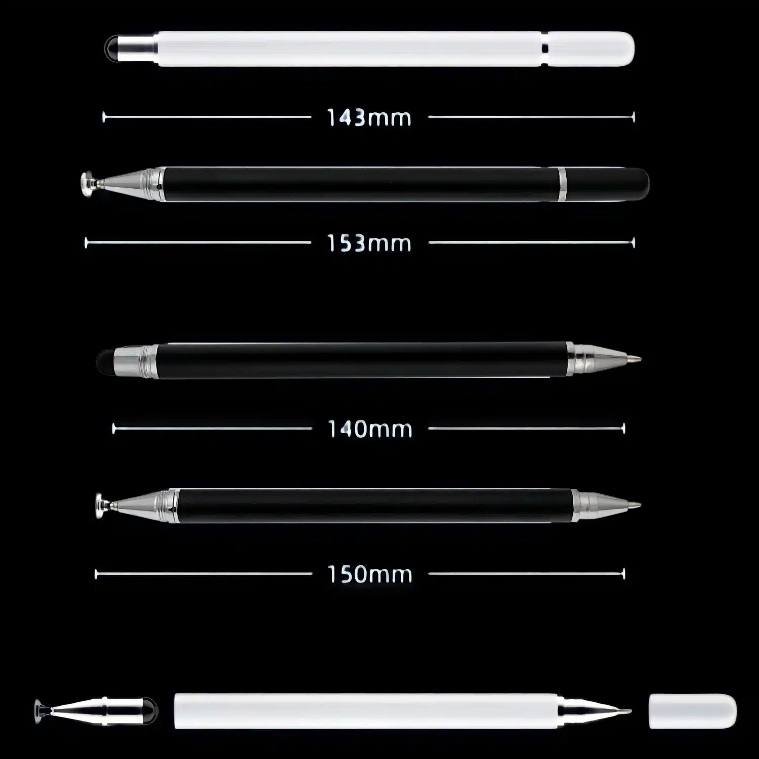 Fine point silicon disc tip for writing and drawing, round tip for smooth navigation and gaming, and a built-in ballpoint pen for traditional writing.