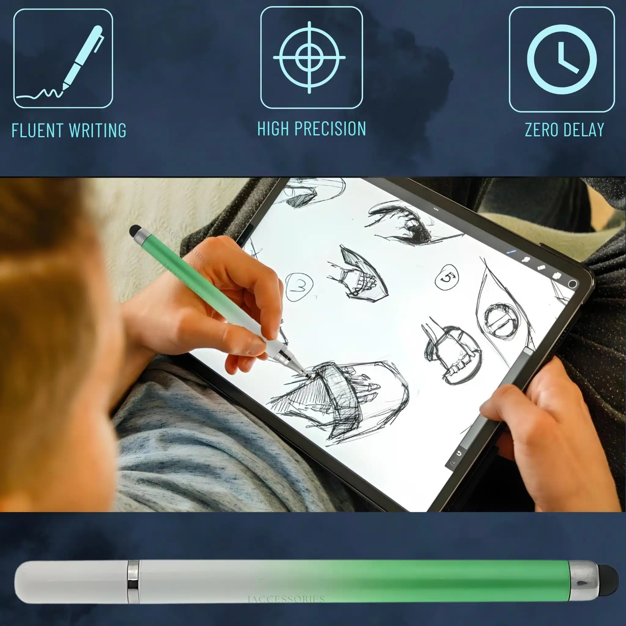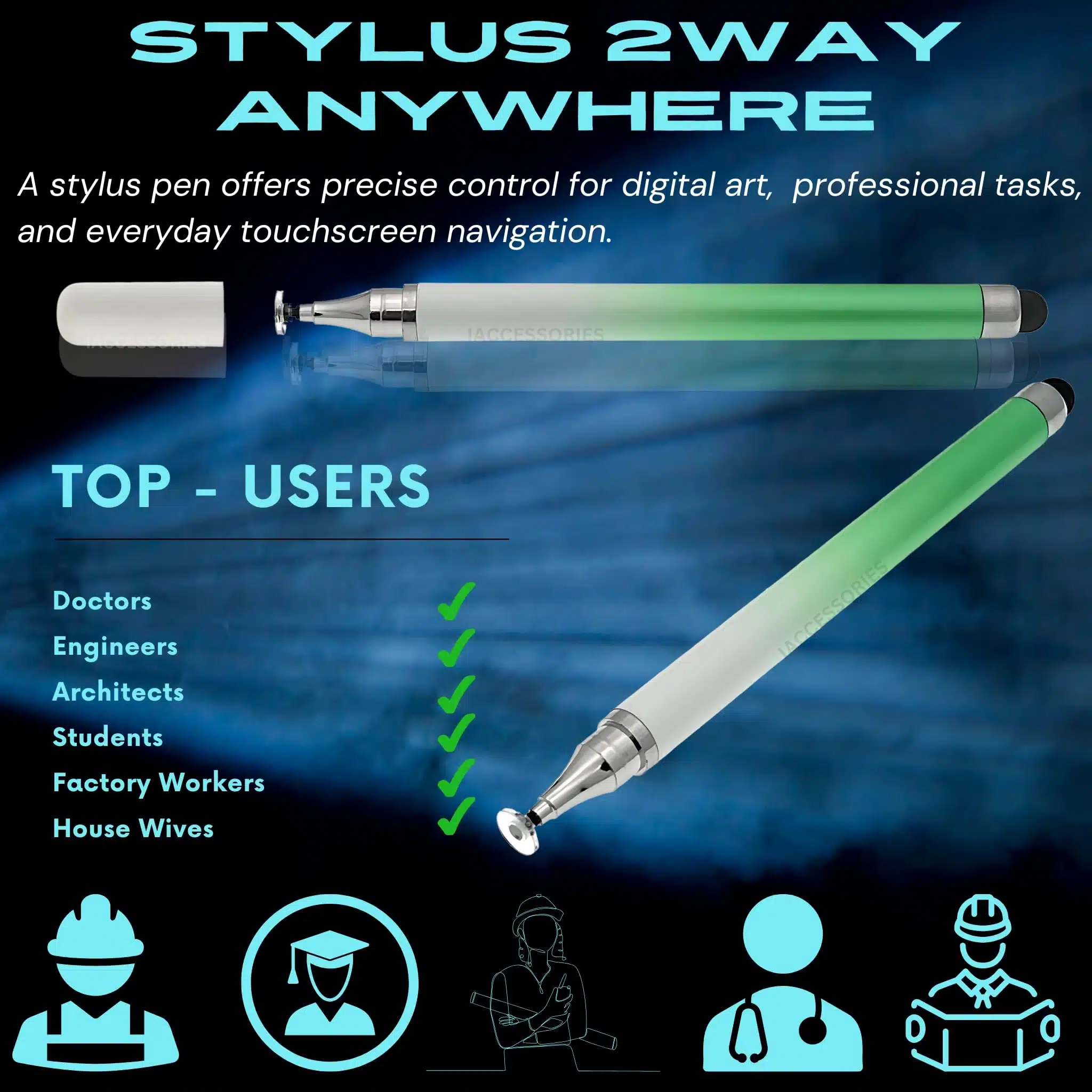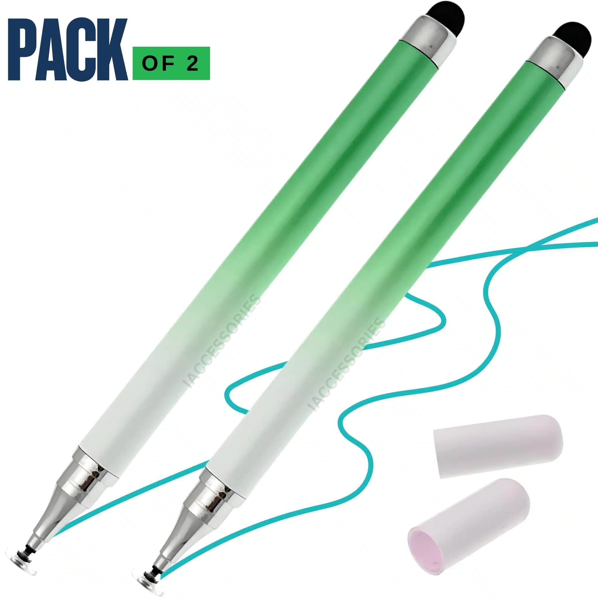 iAccessories Dual-Sided Universal Stylus Pen for All Touch Screen Devices – Pack of 2 | Gradient Green