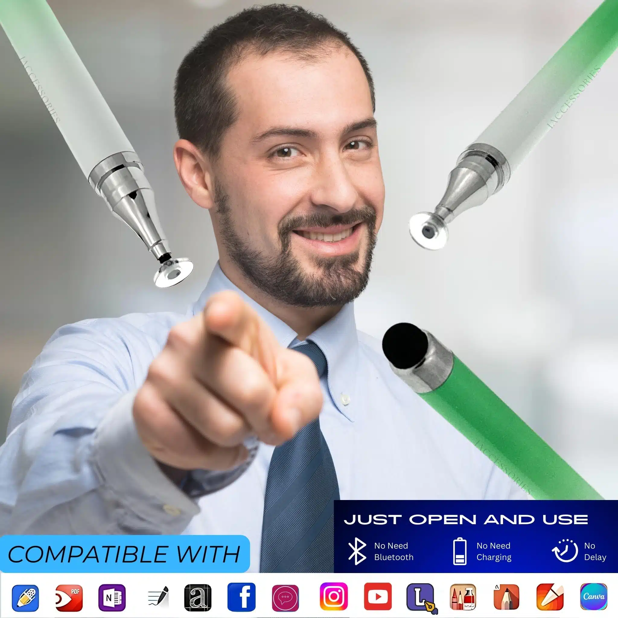 iAccessories Dual-Sided Universal Stylus Pen Pack of 2 offers smooth and precise touch performance on all capacitive touch screen devices. Compatible with Android mobiles, iPhones, tablets, iPads, and other touch screen devices, these stylus pens are lightweight, stylish, and ideal for daily use, study, office work, and gifting.