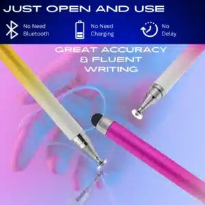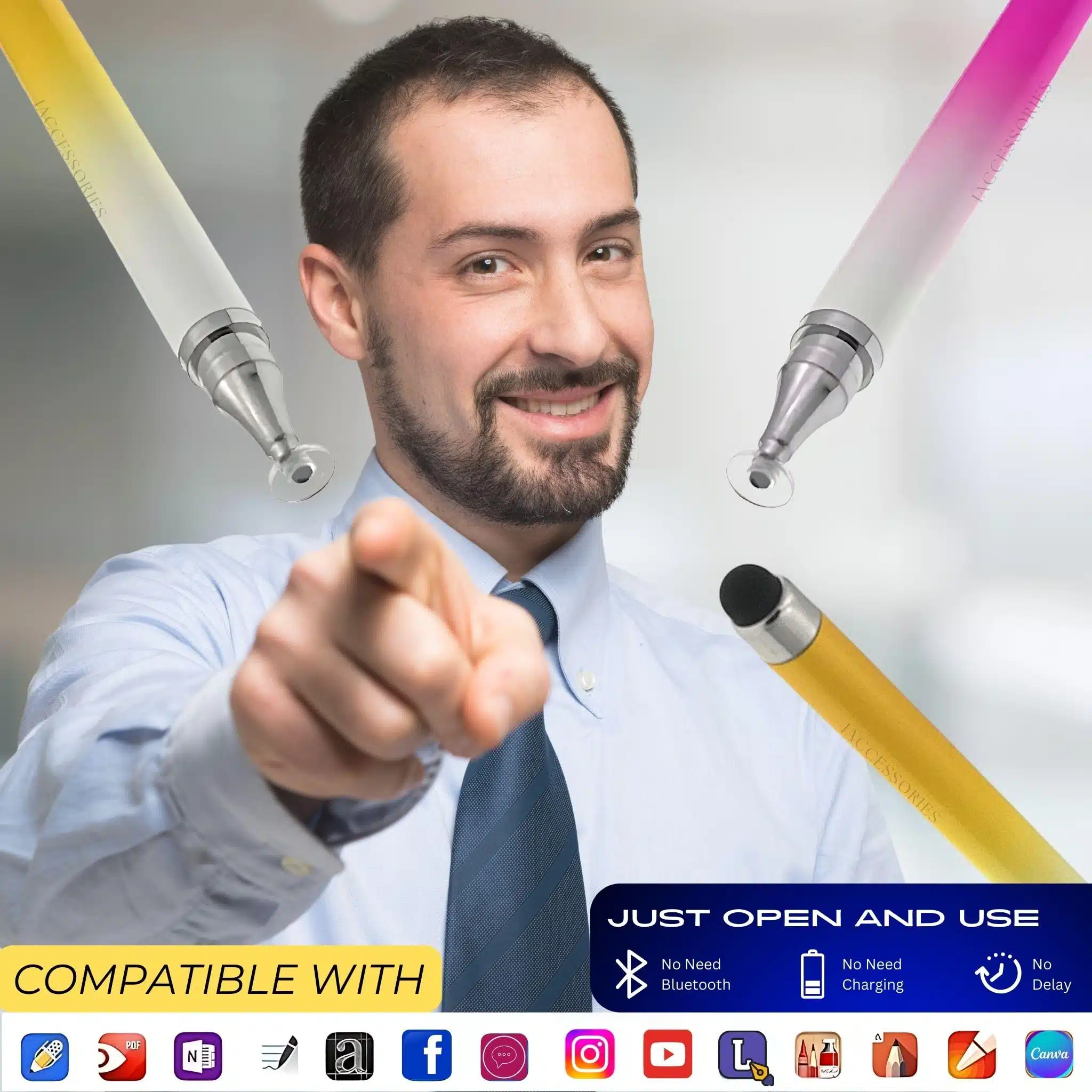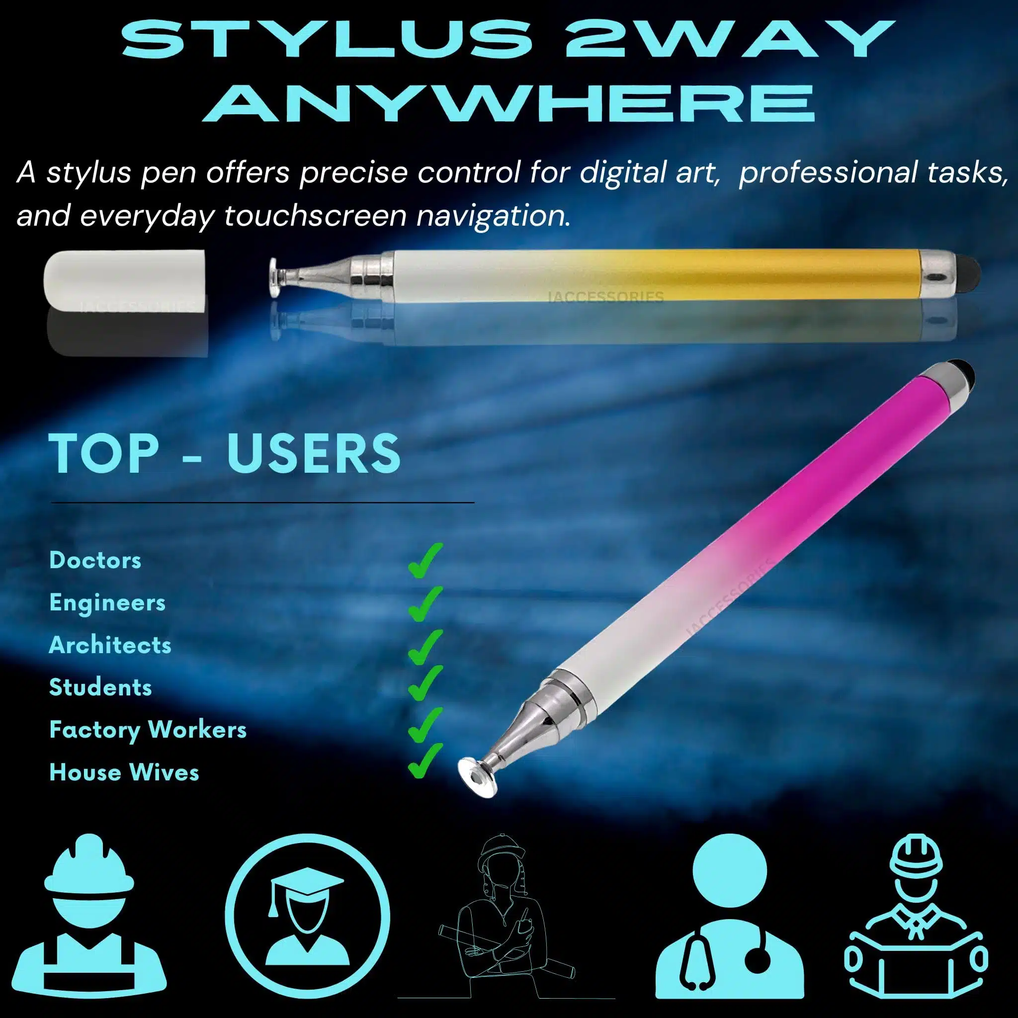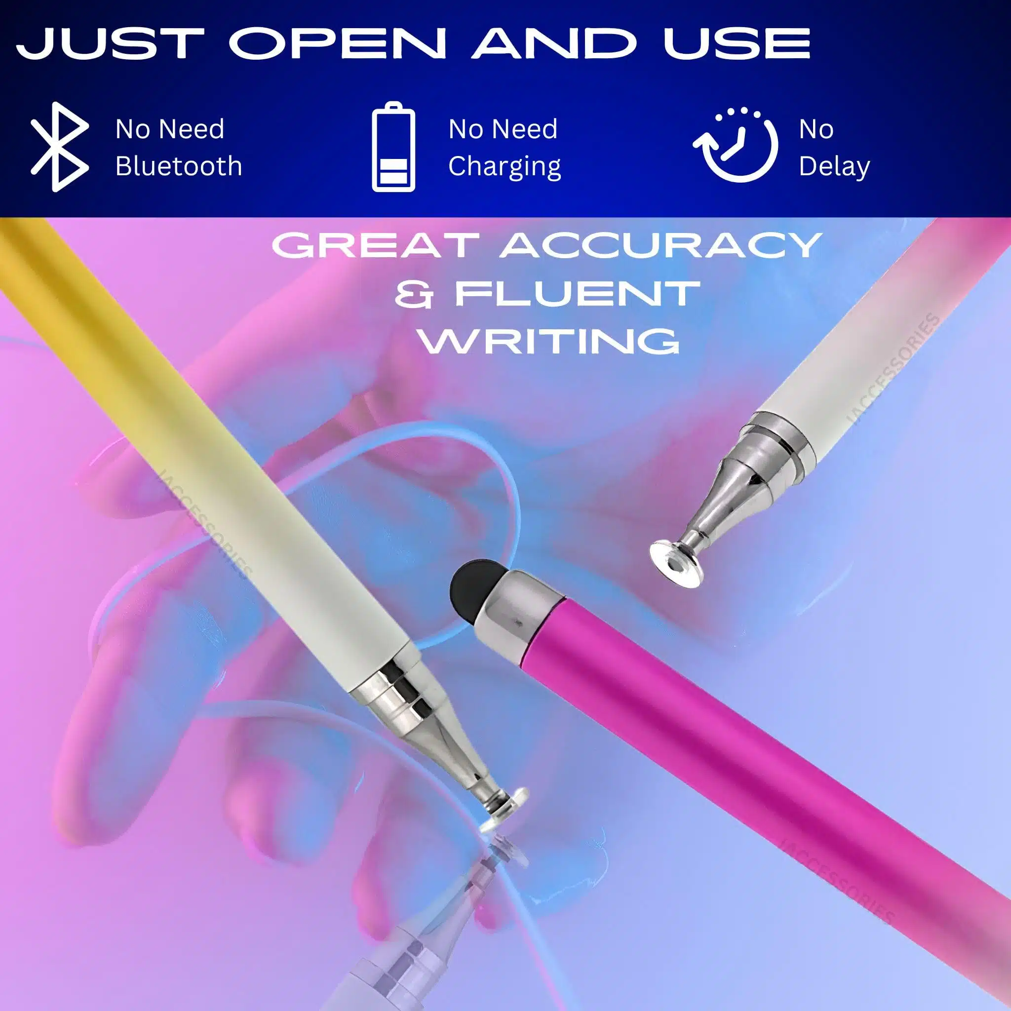 iAccessories Dual-Sided Universal Stylus Pen Pack of 2 offers smooth and precise touch performance on all capacitive touch screen devices. Compatible with Android mobiles, iPhones, tablets, iPads, and other touch screen devices, these stylus pens are lightweight, stylish, and ideal for daily use, study, office work, and gifting.